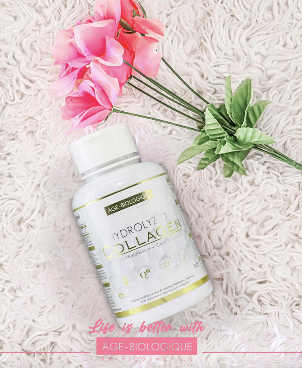 Hydrolyzed Collagen® en cápsulas de Age-Biologique® es un suplemento dietario a base de Colágeno Hidrolizado, Ácido Hialurónico, Coenzima Q10 y Vitamina C.